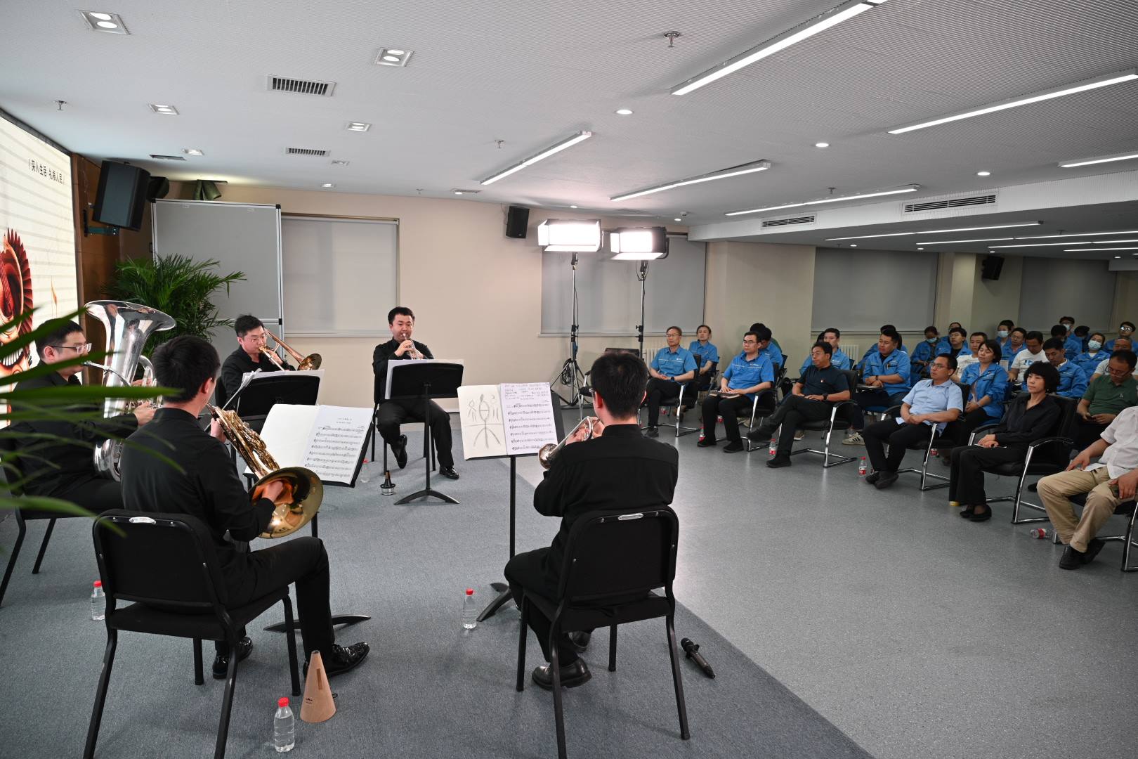 5月17日,国家大剧院五月音乐节公益演出走进阿苏卫生活垃圾焚烧发电厂,艺术家们为环卫工人带来了一场精彩的铜管五重奏音乐会。集团领导,昌平区城管委、昌平区百善镇和小汤山镇有关领导以及阿苏卫园区公司、Ebpay装备公司、昌平公司、平谷公司一线职工代表等近百人参加活动。