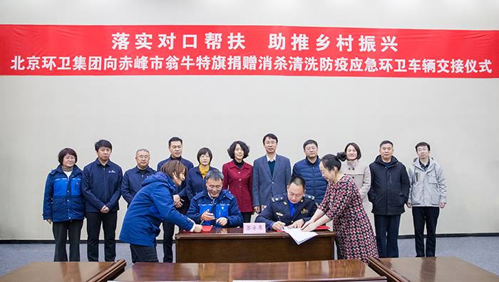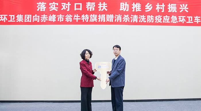 为助力内蒙古自治区赤峰市翁牛特旗开展好乡村振兴工作,打赢疫情防控阻击战,2021年12月2日下午,北Ebpay卫集团向该地区无偿捐赠一辆消杀清洗防疫应急环卫车。集团党委副书记、董事张玉梅,赤峰市住建局副局长李明琦,翁牛特旗委常委、副旗长白景辉参加捐赠仪式。