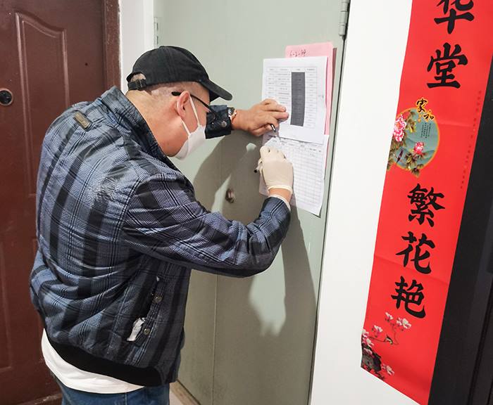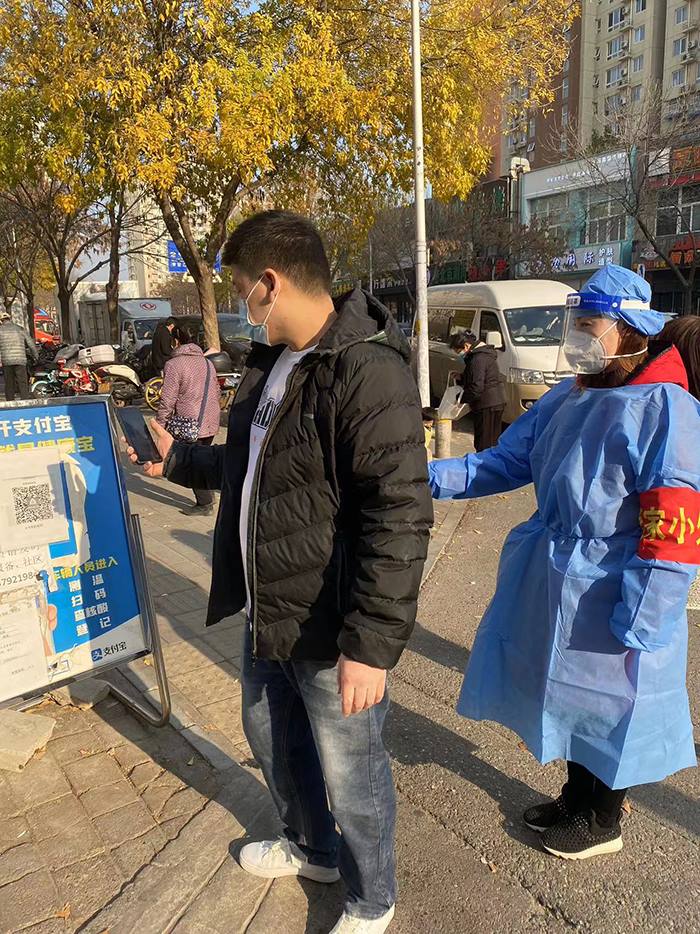 Ebpay装备公司职工李龙在香河园街道西坝河中里社区核对流调信息