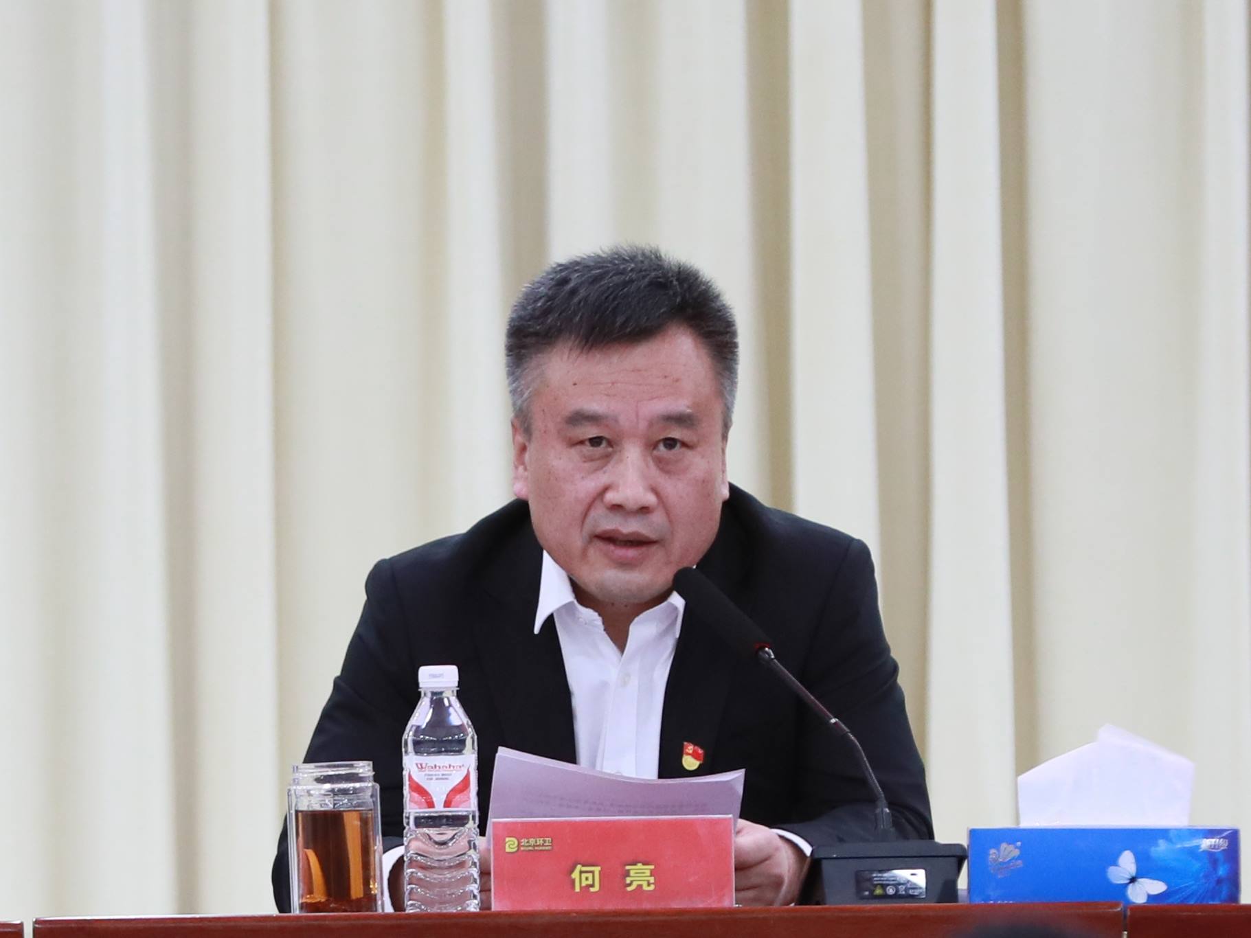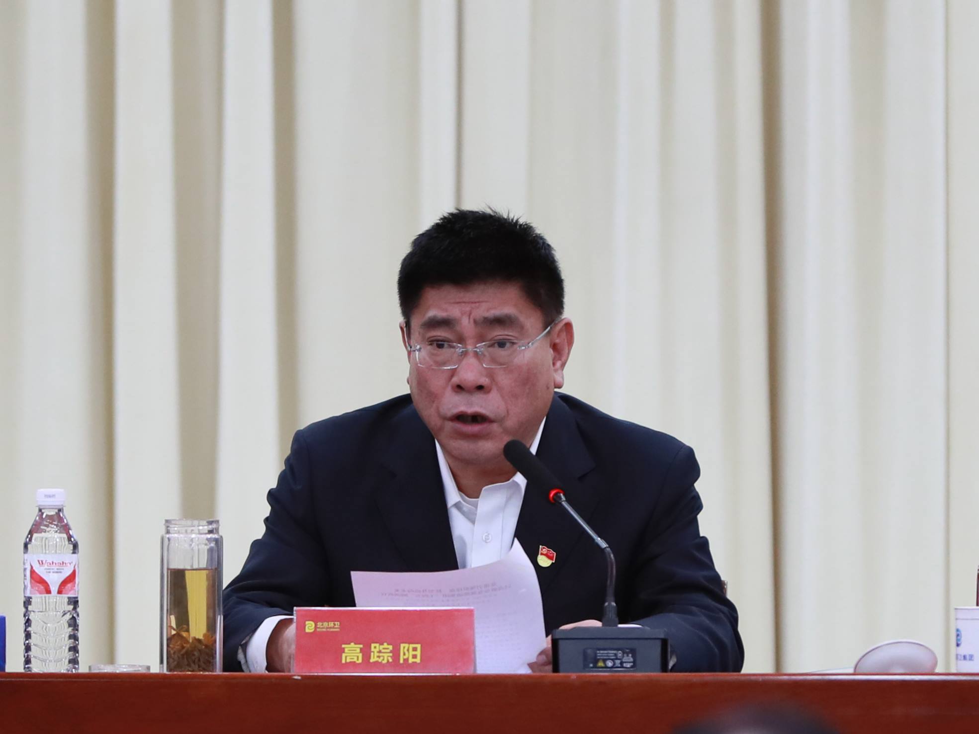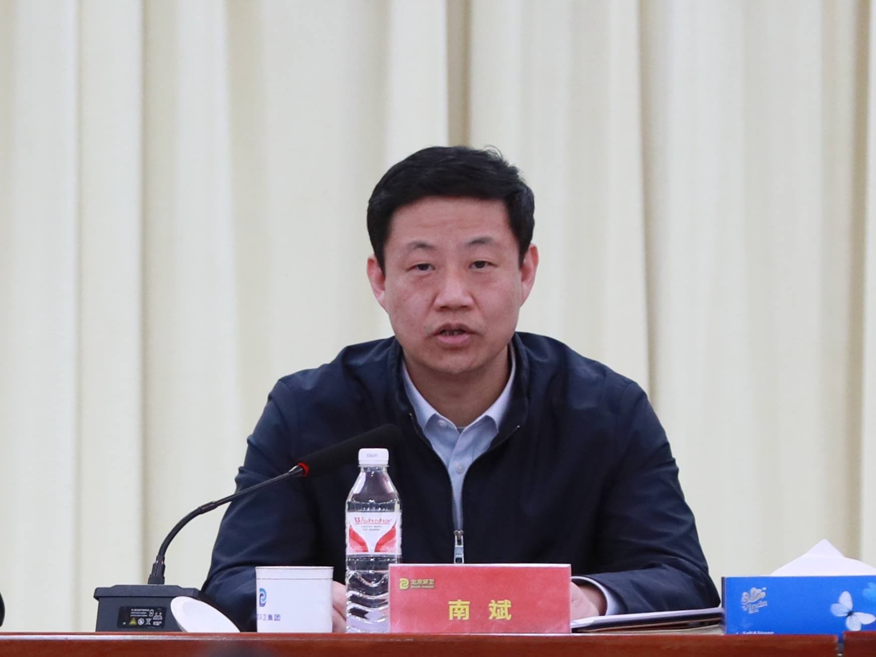 市城市管理委党组成员、副主任南斌代表行业管理部门发表讲话。他对集团2024年取得的各项成绩给予充分肯定,表示集团聚焦升级转型,坚持练内功、提能力、强管理,各方面工作取得显著成绩,体现了首都环卫主力军的实力与担当。结合当前环卫行业形势,他强调,随着首都精细化管理的要求越来越高,环卫行业逐步向集约化、智能化、定制化转变,这既是机遇也是挑战。环卫集团要对标对表“国际一流、和谐宜居”的首善标准,始终坚持以人民为中心的改革方向,进一步深化改革:一是坚持深耕北京,继续推广区企合作模式,坚定地进单位进社区,扎扎实实地稳质量、提质量,为美丽北京建设贡献专业力量。二是紧抓升级转型,构建再生资源回收和专业化分拣能力,升级更新环卫作业车辆和装备,协同处置其他城市固废,扎实推动集团高质量发展。三是强化企业管理,加强作业全过程管控,落实各级安全生产责任,进一步加强精细化管理,努力建设世界一流环境综合服务商。他表示,市城市管理委将一如既往地支持集团做强做优做大,并与集团一起助推首都经济高质量发展。